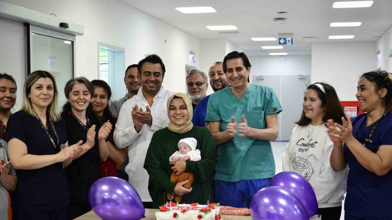 Mersin’de 26 haftalıkken 380 gram ağırlığında prematüre olarak dünyaya gözlerini açan Hira Su bebek, Mersin Şehir Hastanesi’ndeki 155 günlük tedavisinin ardından pasta kesilerek taburcu edildi.
