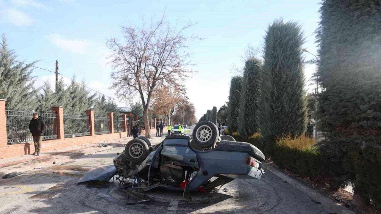 Konya’da aşırı hız nedeniyle kontrolden çıkan otomobil kaldırımdaki ağaca çarparak cadde üzerine takla attı. Ters dönerek duran araçta bulunan sürücü ve yolcu yaralanırken, kaza yapan sürücünün 50 gün içerisinde 5 trafik cezası yediği öğrenildi.