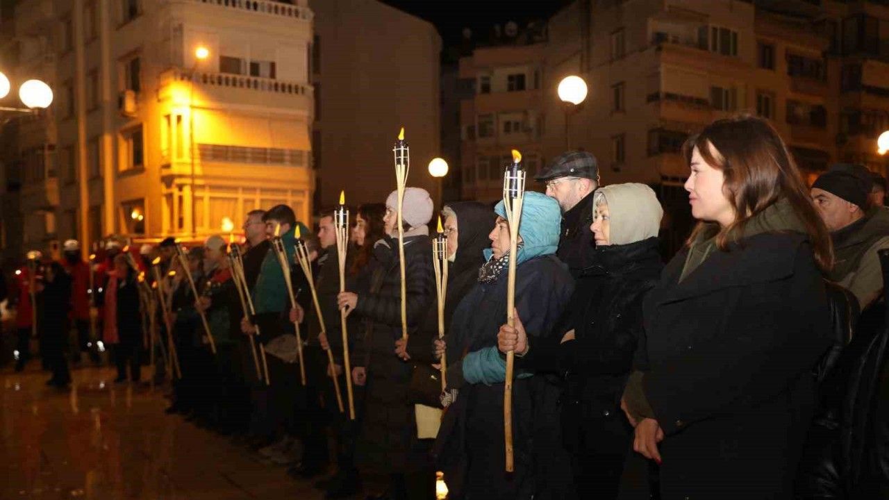 Mudanya’da düzenlenen anma töreninde, depremin gerçekleştiği saat 04.17’de vatandaşlar mumlar ve meşaleler eşliğinde 65 saniye sessiz kaldı.