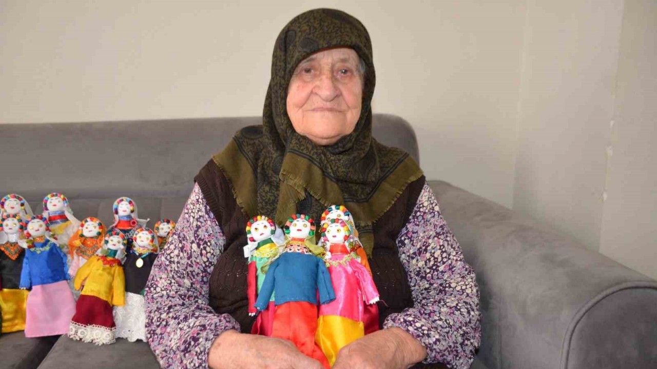 Kahramanmaraş merkezli 6 Şubat depremlerinden sonra Adıyaman’dan Bilecik’e yerleşen 93 yaşındaki Şerife Demirkol, yaptığı bez bebekleri çocuklara dağıtıyor.