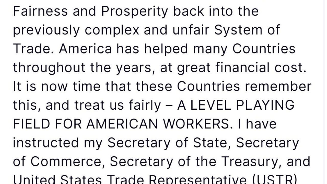 uluslararası ticarette uzun süredir devam eden dengesizliklerin düzeltmeyi ve adaleti sağlamayı amaçladığı vurgulandı. "Amerika’nın istismar edildiği günler geride kaldı" denilen açıklamada, "Bu plan Amerikan işçisine öncelik verecek, endüstrinin her alanında rekabet gücümüzü artıracak, ticaret açığımızı azaltacak ve ekonomik ve ulusal güvenliğimizi güçlendirecektir" denildi.