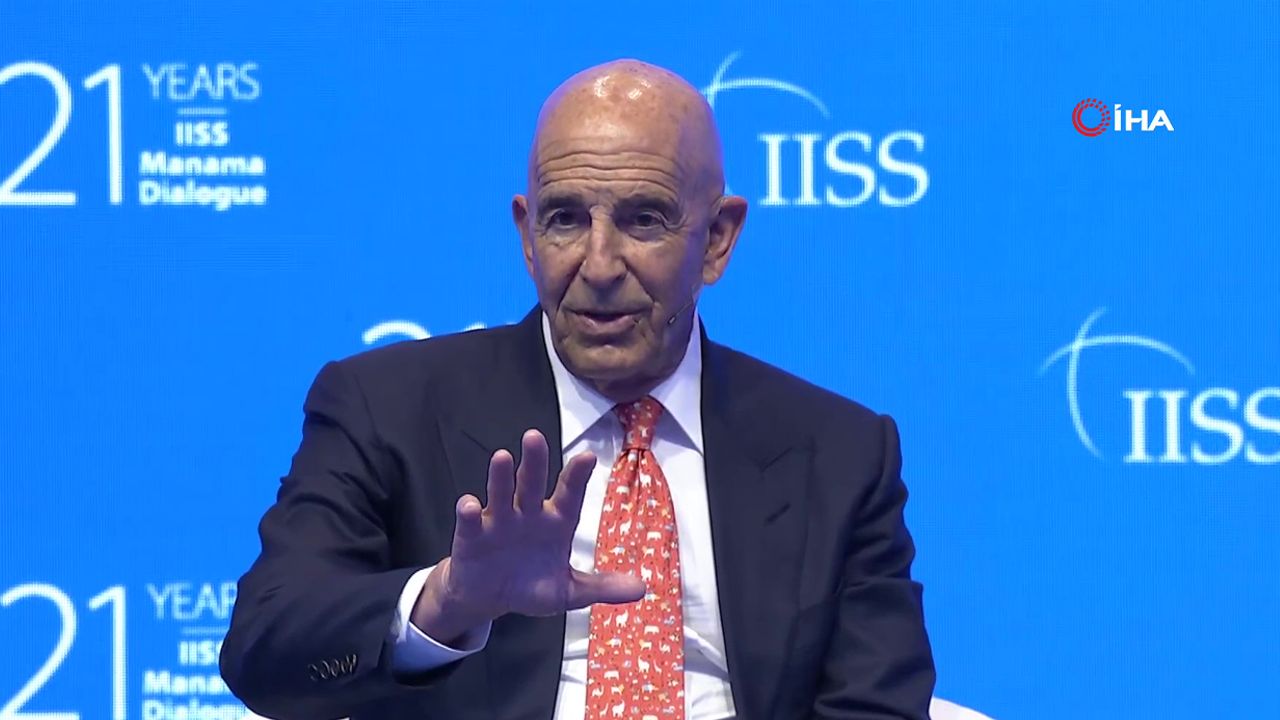 ABD Başkanı Donald Trump’ın Orta Doğu Özel Temsilcisi ve Ankara Büyükelçisi Tom Barrack, Uluslararası Stratejik Çalışmalar Enstitüsü'nün (IISS) "Manama Dialogue 2025" forumuna katılmak üzere Bahreyn’e geldi. Barrack, başkent Manama’da düzenlenen forumdaki açıklamalarında, Orta Doğu’daki son gelişmelere ve Türkiye’nin Gazze Şeridi’nde Hamas ile İsrail arasında ateşkesin sağlanmasına yönelik çalışmalarda oynadığı role değindi. Türkiye’nin ateşkesin sağlanması için büyük katkı sağladığını belirten Barrack, "Türkiye olmasaydı Gazze Şeridi’nde ateşkes sağlanamazdı. Başkan Trump, Cumhurbaşkanı Erdoğan’a 4 kez teşekkür etti" ifadelerini kullandı.