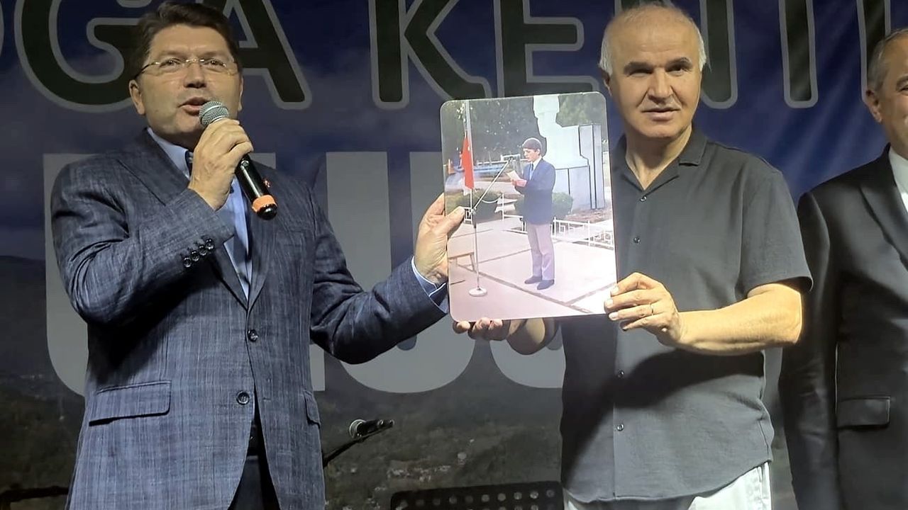 Konuşmasının ardından ise Bakan Tunç’a lise döneminde çekildiği bir fotoğrafı hediye edildi. Karabük Bartınlılar Derneği Başkanı Yüksel Korkut tarafından verilen fotoğrafı görünce çok duygulanan Bakan Tunç, okul hatırlarını ve fotoğrafın hikayesini anlattı. Tunç, "İlkokulu köyde okudum. Tabii ortaokul için babam, ’Köyden Ulus’a gidip gelmen zor olacak. Devlet parası yatılı sınavlarına katılman lazım. Çalış, sınavları kazan, parasız bir yatılı okula, seni verelim’ dedi. Babamın yüzünü kara çıkartmamak için oturduk, dördüncü beşinci sınıfta, sürekli ders çalışarak, Kastamonu Göl Öğretmen Lisesi’ni kazandım. Valizimiz boyumuzdan yüksekti. Bizi teslim ettiler Kastamonu’ya. Orada ortaokul ve lise olmak üzere 6 yıl yatılı okudum. Bu resim, çok büyük sürpriz oldu. Son sınıfta kompozisyonda Kastamonu il birincisi olmuştum. Anons yapmışlardı, ’birinci oldu’ diye. Bayrak töreni, resimde de belli oluyor. Kompozisyonu, okul müdürü ’okuman lazım’ dedi, okuduk. Bu resmi bulmuşlar, nereden buldularsa. Karabük Bartınlar derneğimiz, bugün çok anlamlı bir hatırayı bize takdim ediyor. Gerçekten çok duygulandım" dedi.
