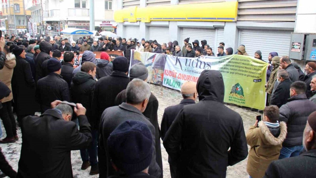Ağrı Kudüs Platformu tarafından organize edilen basın açıklamasında Ağrılılar sık sık tekbir getirdi, ABD ve israil’e tepki gösterdi.