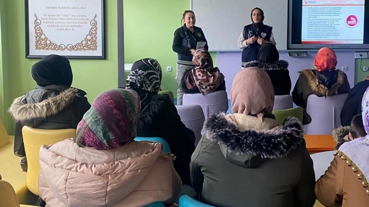 Bitlis’in Ahlat ilçesinde polis ekipleri tarafından kadına yönelik şiddetin önlenmesi amacıyla bilgilendirme çalışması yapıldı.