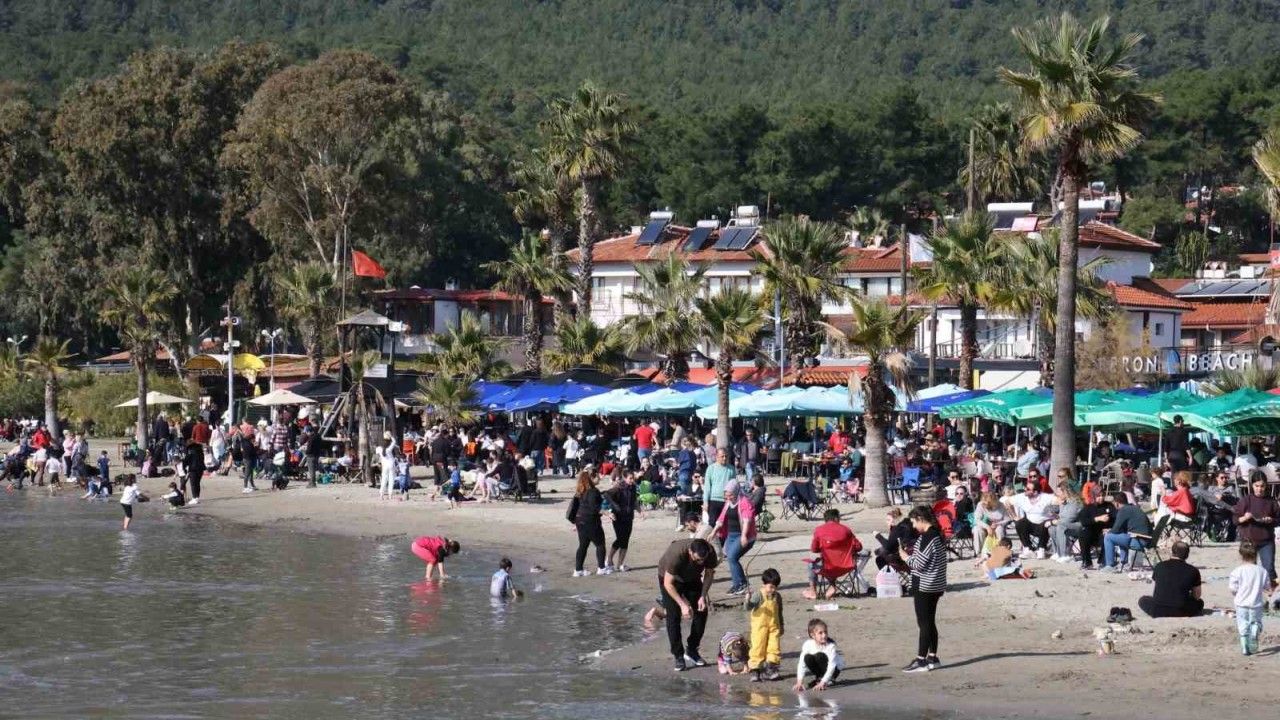 Muğla’nın Ula ilçesine bağlı Akyaka, hafta sonu yazdan kalma bir gün yaşadı. Hava sıcaklıklarının mevsim normallerinin üzerinde seyretmesini fırsat bilen vatandaşlar sahile akın etti.