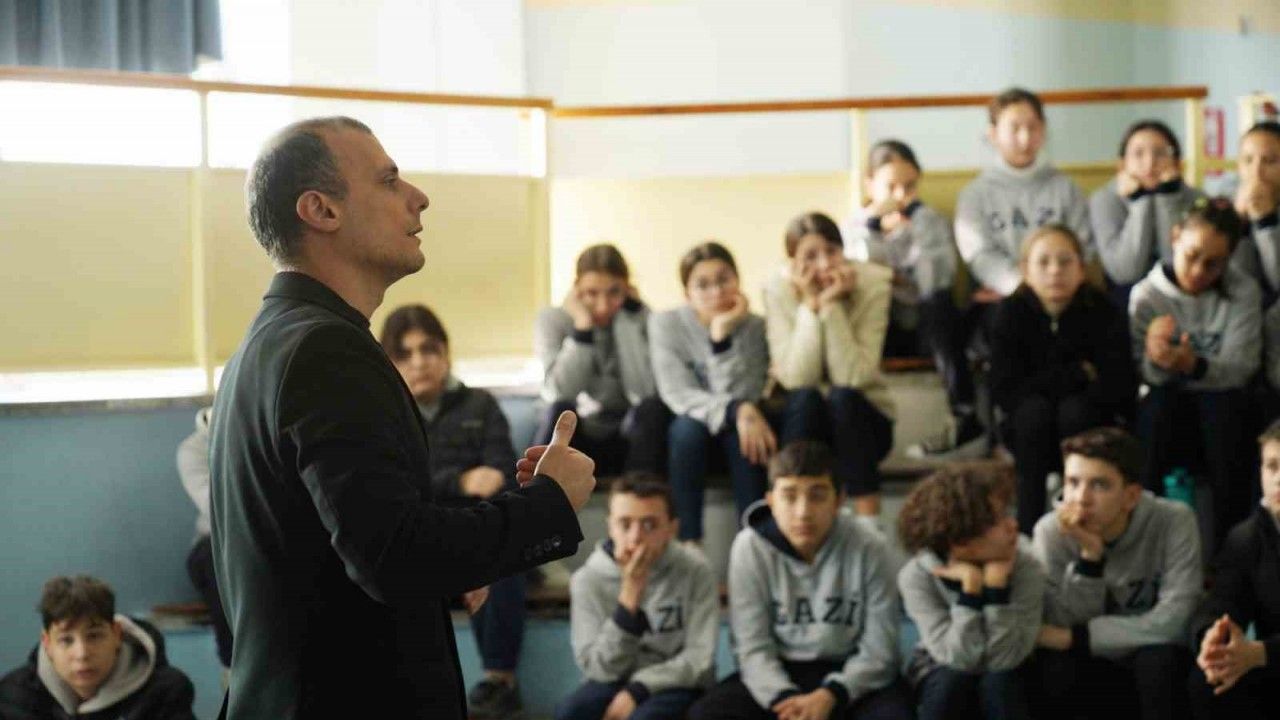 Aliağa Belediyesi İklim Değişikliği ve Sıfır Atık Müdürlüğü tarafından verilen seminerde birim müdürü çevre mühendisi Ozan Turan, öğrencilere sıfır atığın çevreye olan etkisi ve önemi hakkında bilgilendirmeler yaptı.