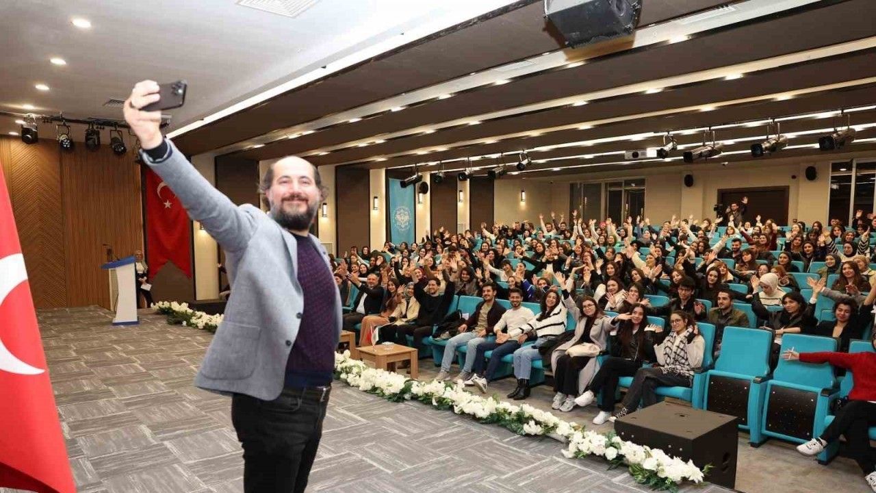 Öğrencilerle samimi bir şekilde iletişim kurarak etkili bir anlatım sergileyen Ömer Akgül somut örneklerle desteklediği konuşmasında, katılımcıları da etkinliğe dahil ederek interaktif bir sunum gerçekleştirdi. "Hayatın akışına katkı sağlamak için kendimizi ve başkalarını tekrar etmememiz gerekir" diyen Akgül, bireylerin kendilerini sürekli geliştirmesi gerektiğinin, kendileri ve başkalarını tekrar etmemesi gerektiğinin altını çizdi. Konuşmasının devamında Akgül, "Bizden bir tane daha yok, olmayacak da. Sadece fiziksel değil ruhsal ve karakter olarak da tüm diğer insanlardan farklıyız. En önemlisi varoluşsal anlam bakımından da her birimiz benzersiziz. Gönlümüze ve ruhumuza hoş gelenlere yönelip, varoluşsal anlamımızı bilip o yolda ilerlemek önemlidir. İnsan, olmak üzere var olduğu şeyin dışında başka bir şey olursa gerilim olur. Varoluşsal anlamımızı bilip doğru yerde durmak önemlidir. Eşsiz ve biricik olmakla beraber tesadüfi olmayan şekilde bir araya gelmiş parçaların bir bütünüyüz. Tesadüfen bir araya gelmediysek varoluşumuzun bir anlamı var." dedi. Akgül etkinlik boyunca insanın kendini keşfetme süreci, varoluşsal anlam arayışı ve ruh sağlığının önemi üzerinde durup bireylerin sadece akademik veya mesleki başarıya odaklanmaması, aynı zamanda iç dünyalarını tanımaları gerektiğini vurguladı.