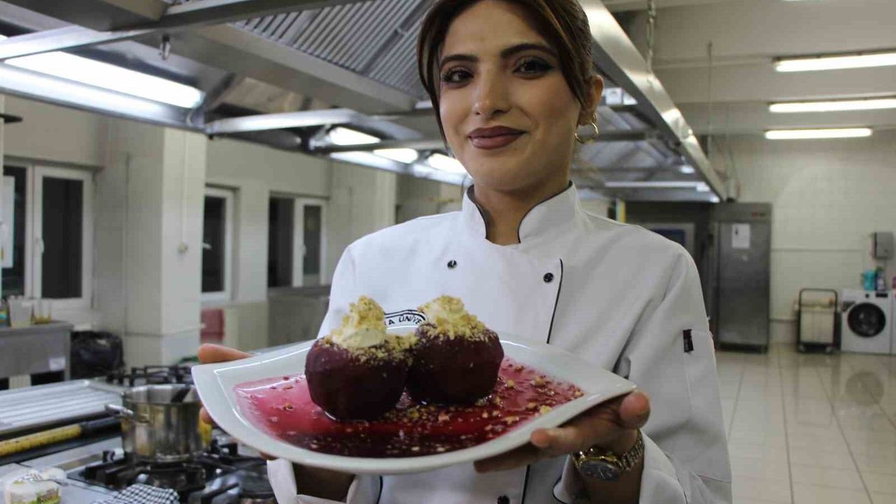 Elma tatlısının tarifini anlatan Başün, "Elmalar temizlenip soyacak yardımıyla ortasını açılıyor. Tencereye yerleştirip içlerine ve her elmanın ortasına bir yemek kaşığı şeker ekleniyor. Üzerlerine hibiskus ve tarçın ilave edip kısık ateşte ağzı kapalı pişiriliyor. Soğuyunca elmaların içine ceviz, fıstık ekleyip üzerini kaymak ile süsleniyor" diye konuştu.