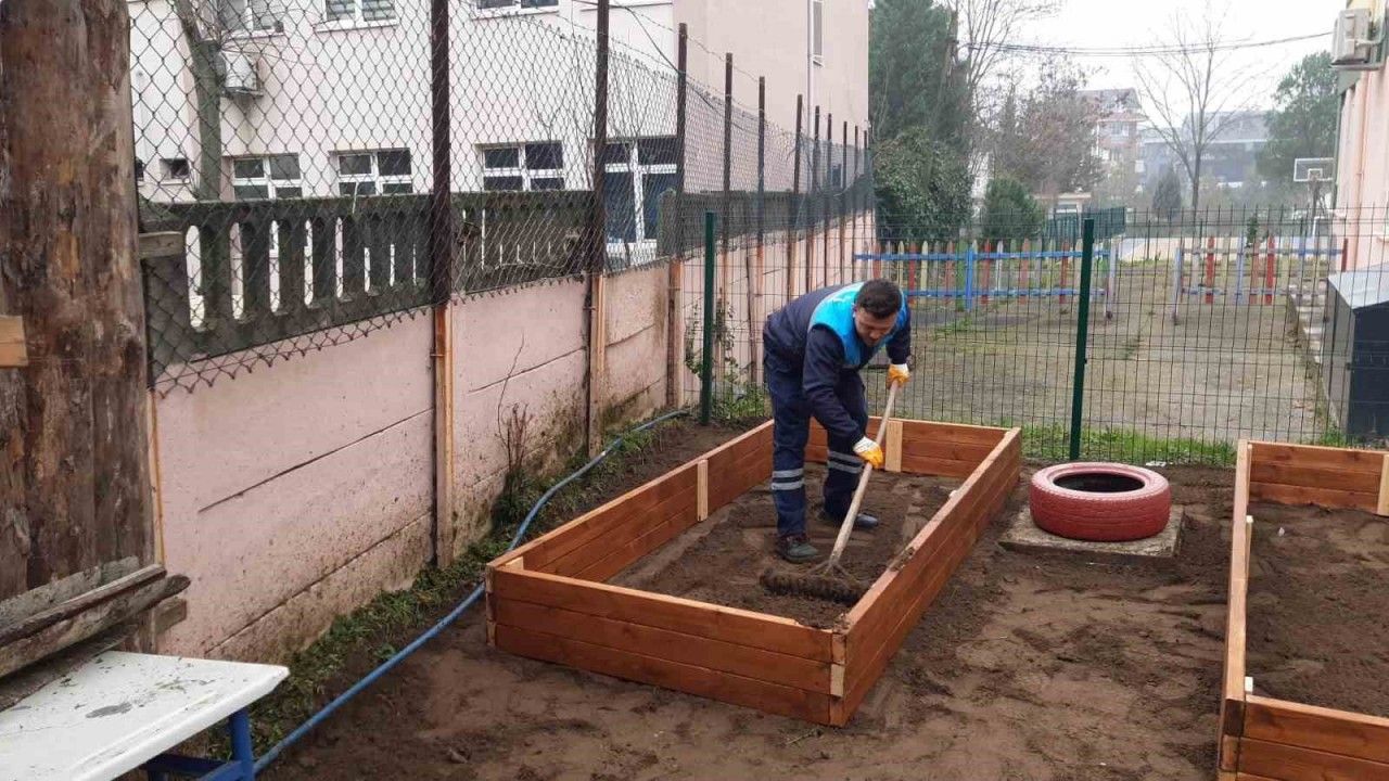 Başiskele Belediyesi, ilçedeki bir anaokuluna öğrencilerin tarımla tanışması için hobi bahçesi oluşturuyor.
