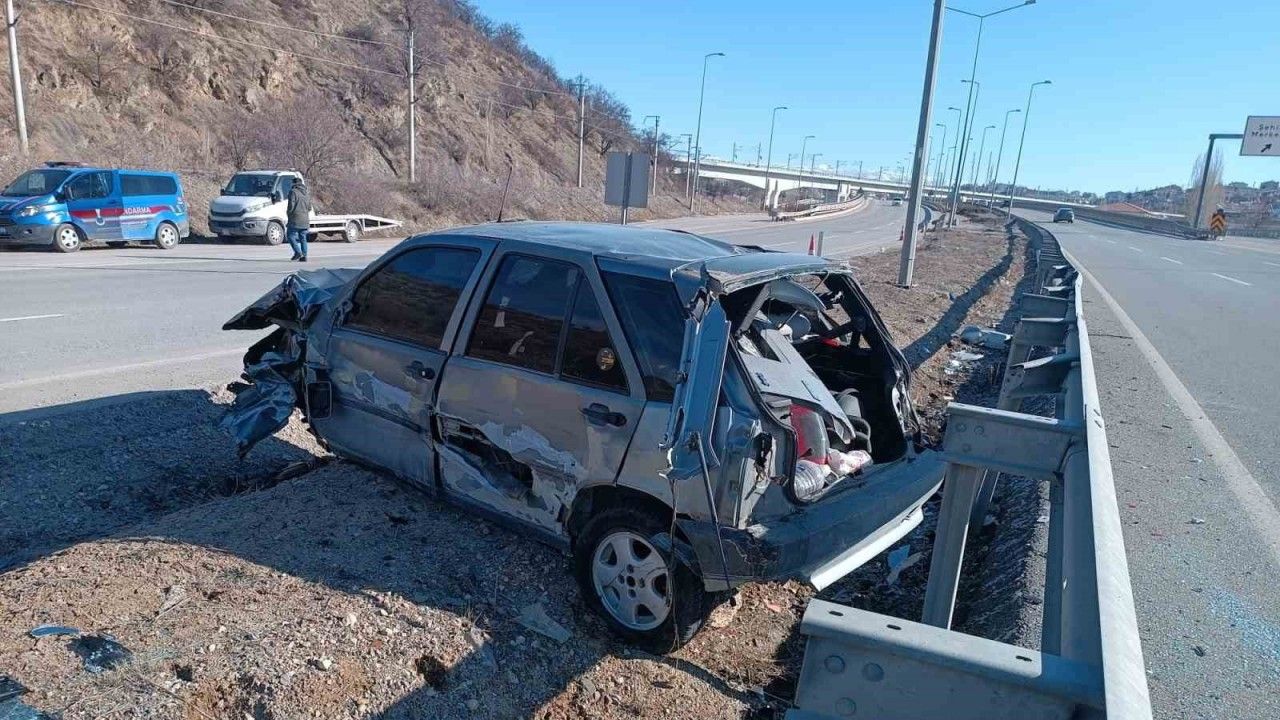 Ankara-Kırıkkale kara yolunda kontrolden çıkarak bariyerlere çarpan otomobildeki 3 kişi yaralandı.