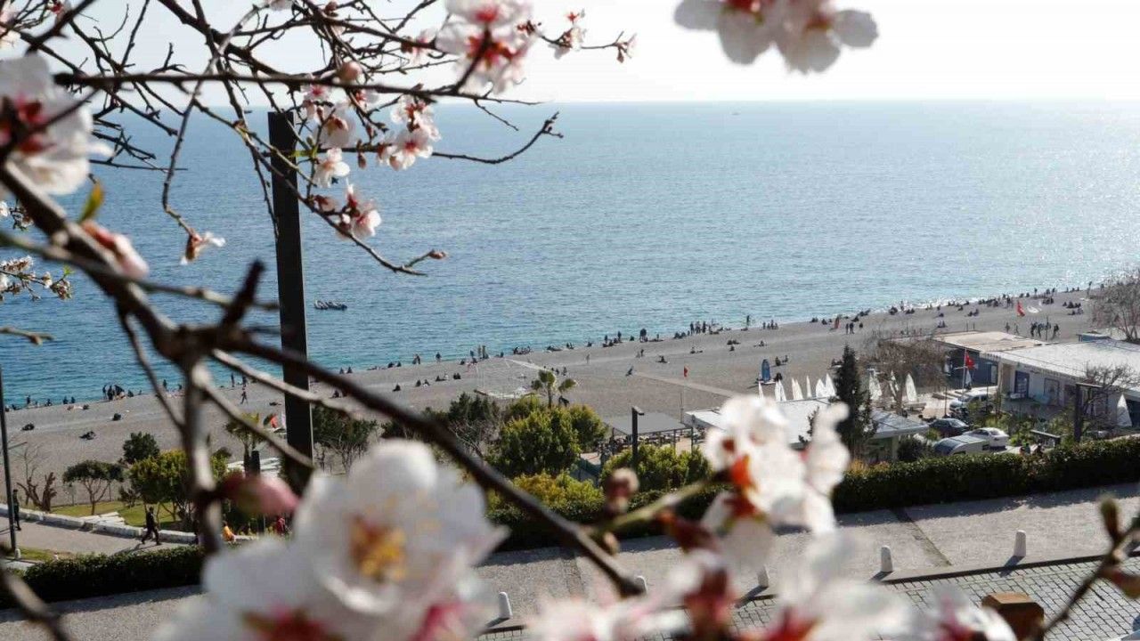 Türkiye’nin birçok noktasında kar ve soğuk uyarısı yapılırken Antalya yazdan kalma günleri yaşıyor. Çiçek açan ağaçlar görsel şölen oluştururken, sıcak havayı fırsat bilen vatandaşlar Konyaaltı Sahili’ni doldurdu.