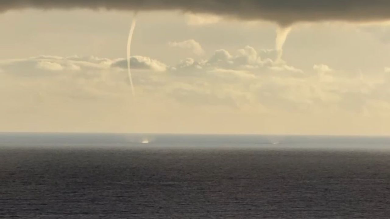 Antalya’da denizde aynı anda oluşan iki hortum, cep telefonu kameralarıyla saniye saniye kaydedildi.