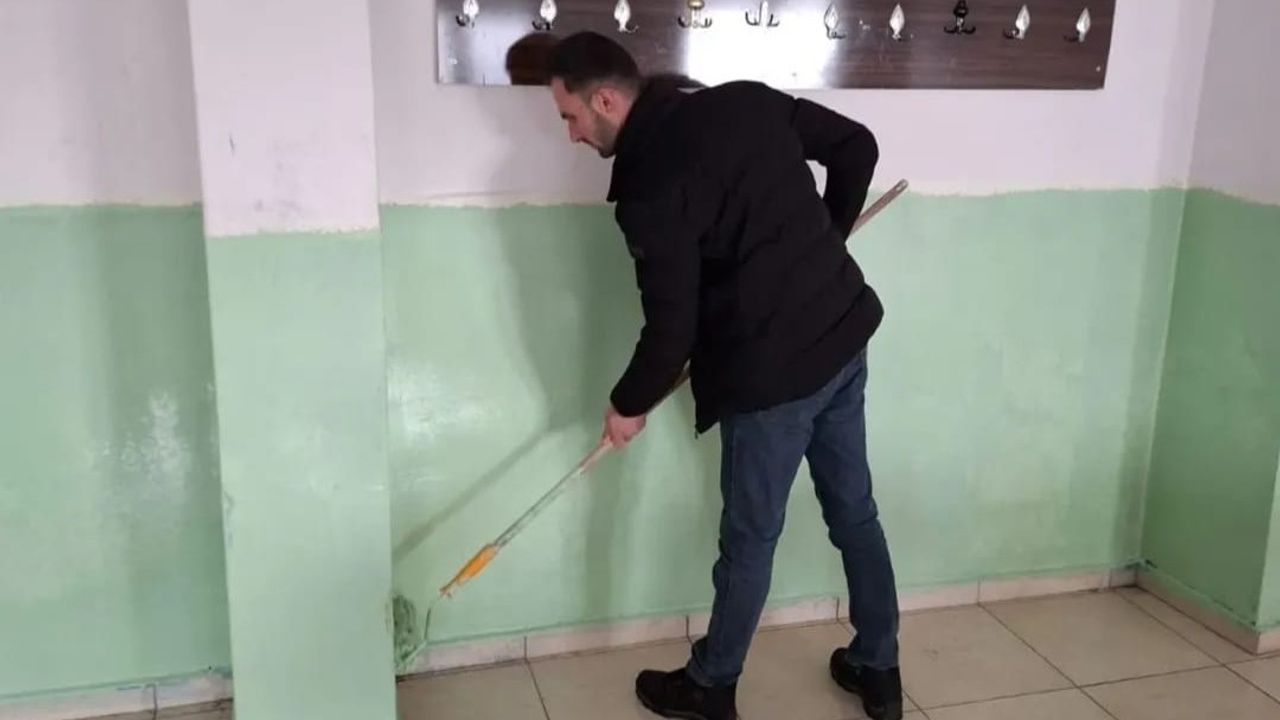 Ardahan’da idareci ve öğretmenler, okullarının eksik tadilatı için kolları sıvayarak ara tatilde de çalışıyor.