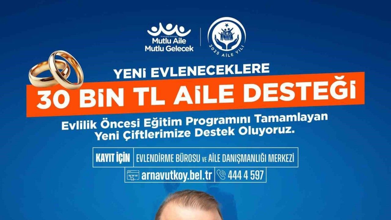 Arnavutköy Belediyesi, yeni evlenecek çiftlere 30 bin TL nakit desteği, ücretsiz nikah hizmeti ve aile danışmanlık hizmeti sunarak, evlilik hayatına sağlam bir başlangıç yapmalarını sağlayacak. Çiftler, bu destekten faydalanmak için Aile Eğitim Programı’na katılım sağlayacak.