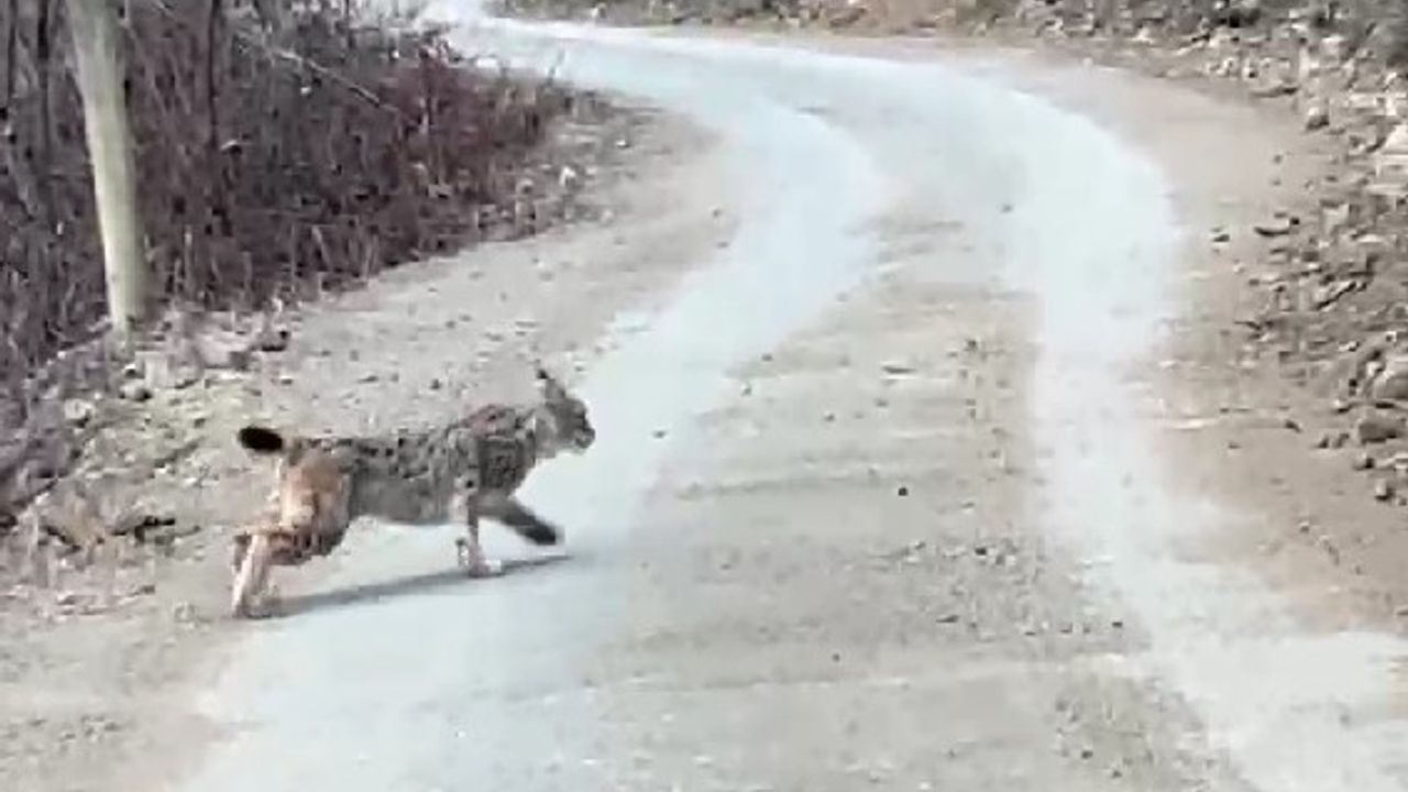 Artvin´in Yusufeli ilçesinde nesli tehlike altında olan bir vaşak, cep telefonu kamerasıyla kaydedildi.
