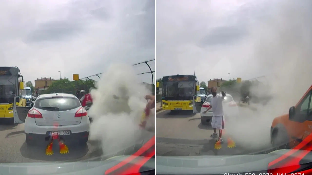 Tartışmanın büyümesiyle birlikte otomobilinden inen sürücü, elindeki bıçakla diğer sürücünün üzerine yürüdü. Bu sırada aracının bagajından yangın tüpünü alan hafif ticari aracın şoförü, saldırganı durdurabilmek için yangın tüpünü sıktı.