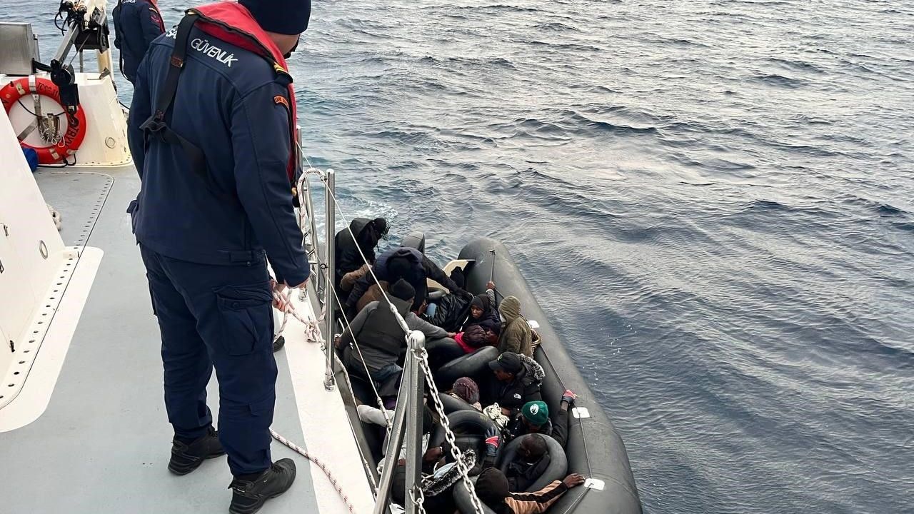 Aydın’ın Kuşadası ilçesi açıklarında lastik bot içerisindeki 16 düzensiz göçmen yakalandı.