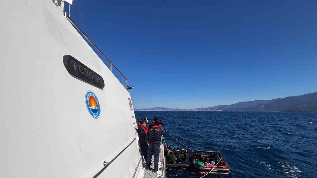 Aydın’ın Kuşadası ilçesi açıklarında can salları içerisindeki 30 düzensiz göçmen sahil güvenlik ekipleri tarafından kurtarıldı.