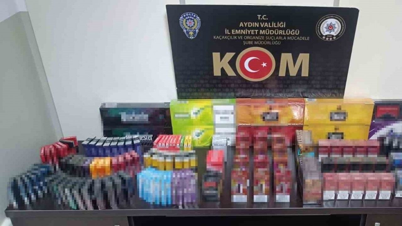 Aydın’ın Efeler ilçesinde Kaçakçılık ve Organize Suçlarla Mücadele (KOM) Şube Müdürlüğü ekipleri tarafından gerçekleştirilen operasyonda 12 adet elektronik sigara, gümrük kaçağı 365 paket sigara ile 55 adet puro ele geçildi.