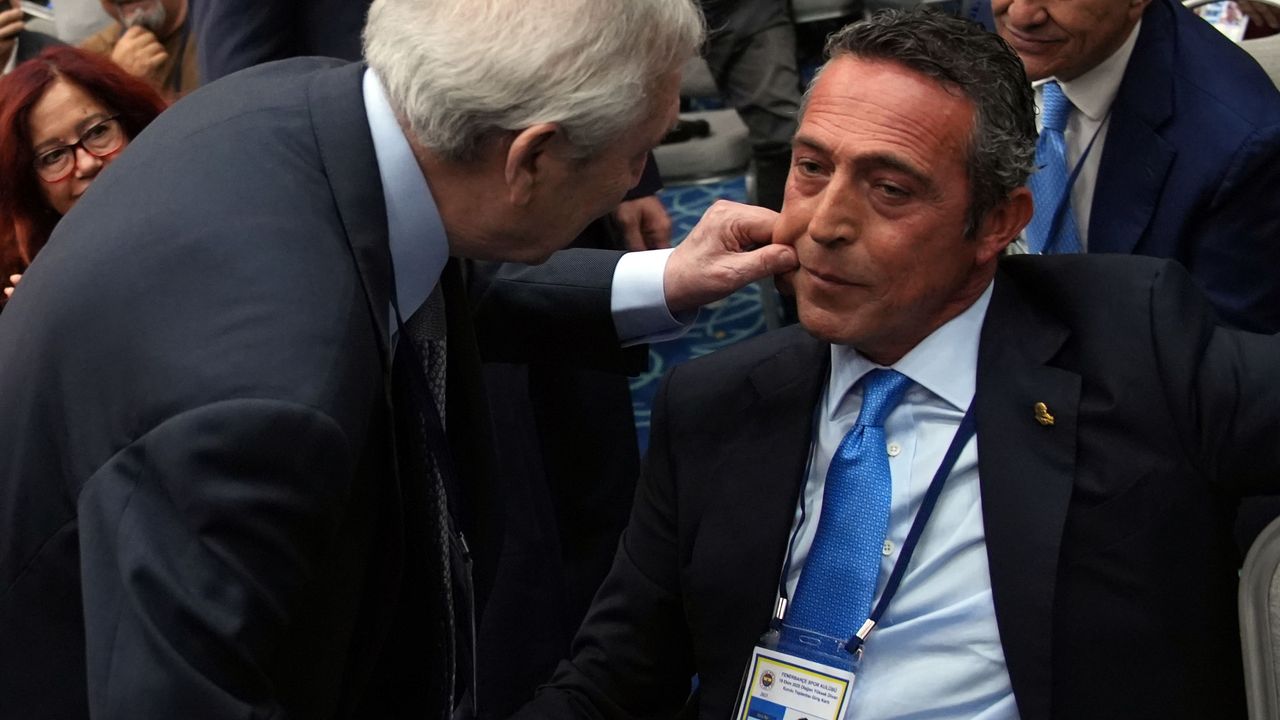 Fenerbahçe Olağan Yüksek Divan Kurulu Toplantısı, Fenerbahçe Faruk Ilgaz Tesisleri’nde yapılıyor. Eski başkanlardan Aziz Yıldırım, kürsüde yaptığı konuşmasının ardından Başkan Sadettin Saran ve yönetiminin elini sıkarken, yerini geçtiği esnada Ali Koç’un yanına gitti. Kürsüde kendisinden bahsetmesi üzerine, unutmasını söyleyen Yıldırım’a Koç, "Sağlığınıza çok üzülüyorum, Allah yardımcınız olsun" yanıtını verdi.
