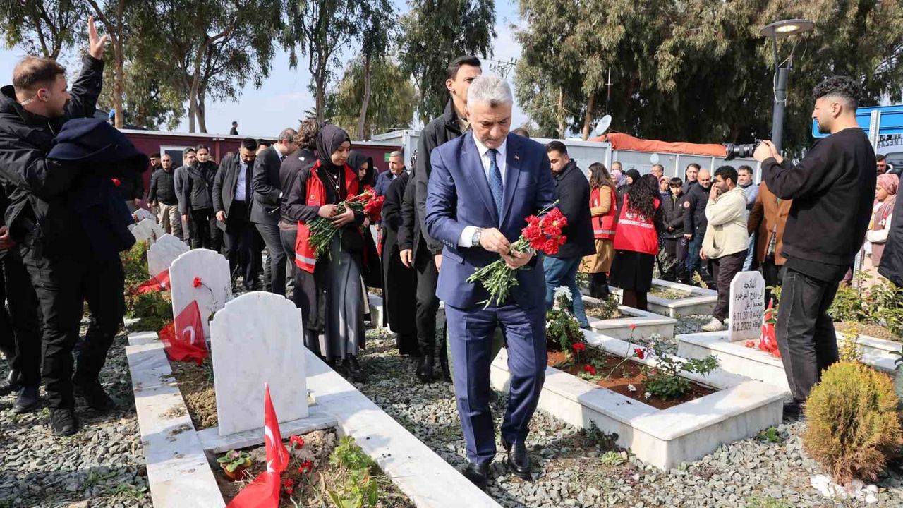 Hatay’da enerji, milli savunma ve ticaret bakanı deprem şehitliğini ziyaret ederek hayatını kaybedenlerin yakınlarının acılarına ortak oldu.