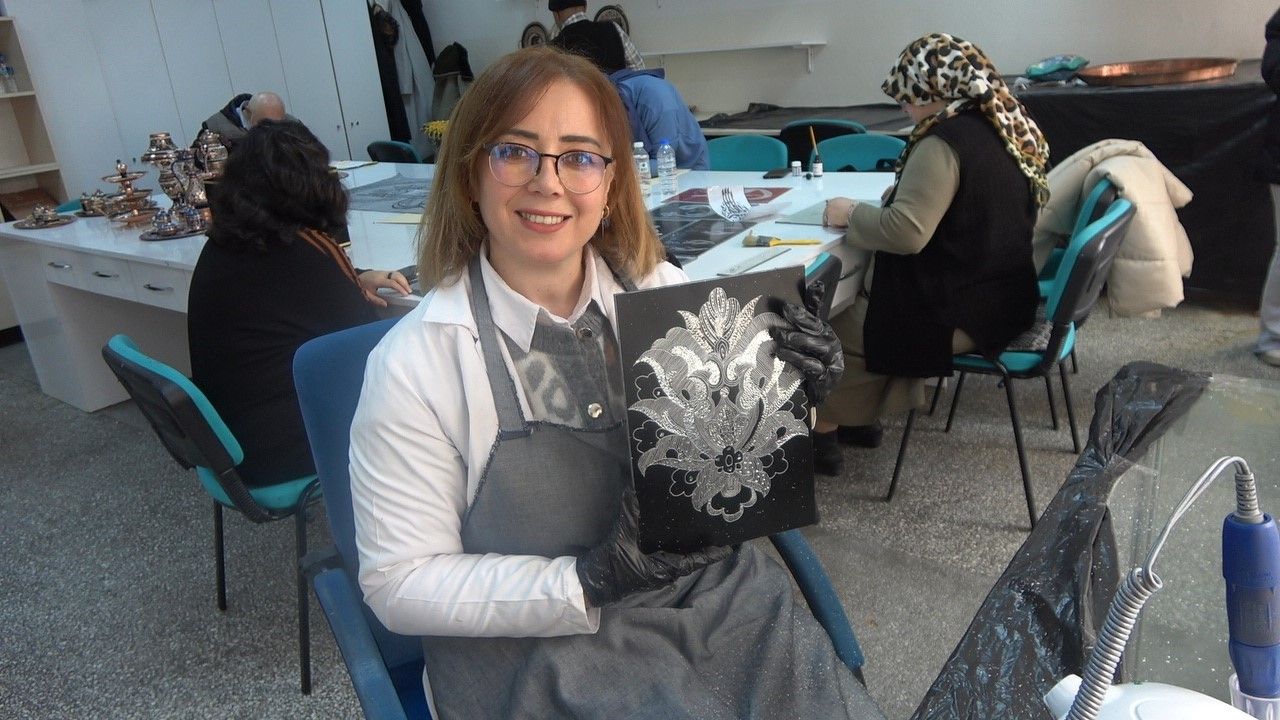 Yozgat Halk Eğitim Merkezi’nde açılan bakır işlemeciliği kursu, kursiyerler tarafından yoğun ilgi görüyor.