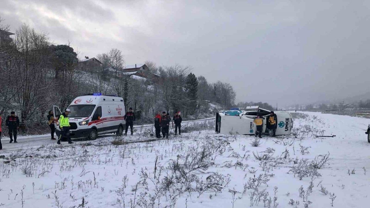 Bartın’da yardıma giden UMKE aracı buzlu yolda devrildi. Kazada 1 kişi yaralandı.