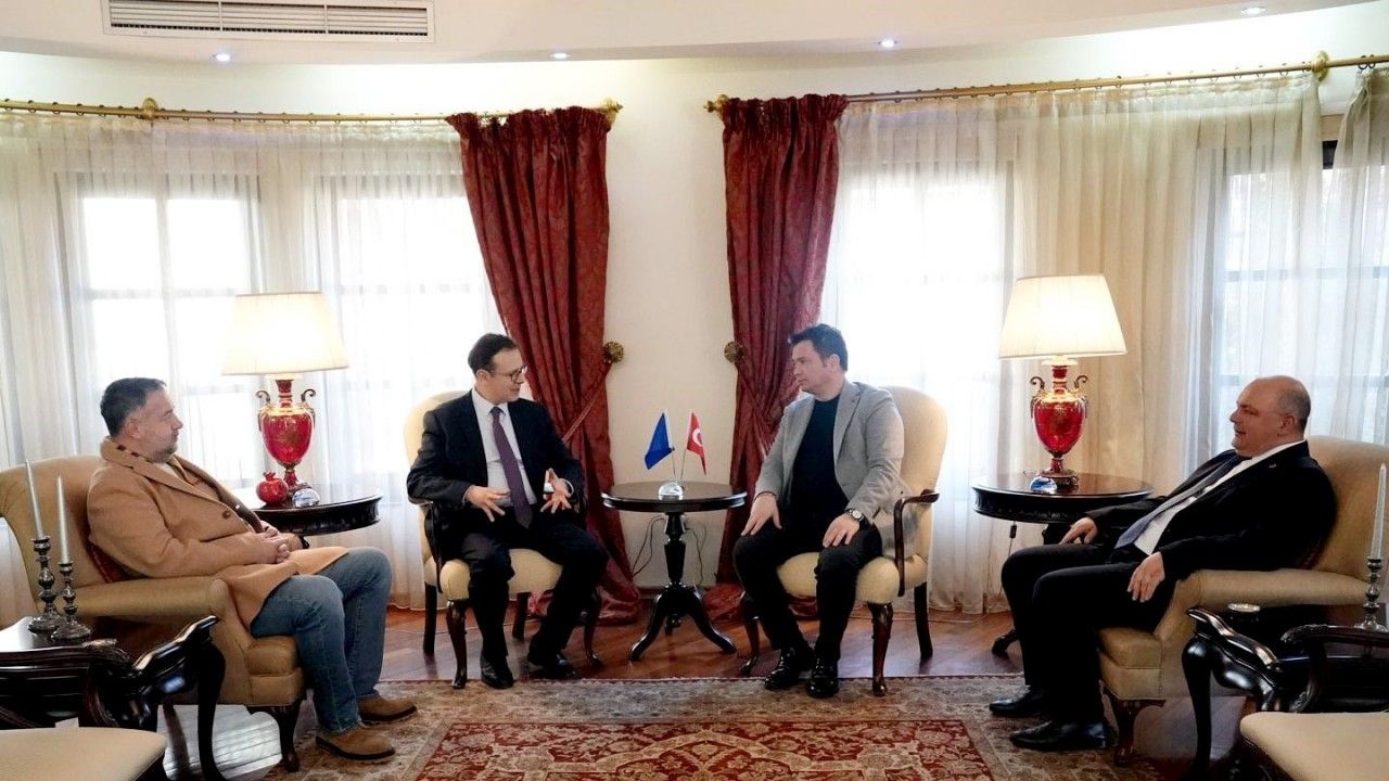 Osmangazi Belediye Başkanı Erkan Aydın, ‘Osmangazi Kardeşler Buluşması’ programı kapsamında gittiği Balkanlarda önemli temaslarda bulundu. Türkiye Cumhuriyeti Priştine Büyükelçisi Tunç Angılı’yı ve Türkiye Cumhuriyeti Prizren Başkonsolosu Celal Doğan’ı ziyaret eden Başkan Aydın, bölgede işbirliği içerisinde gerçekleştirilebilecek projelere ilişkin fikir alışverişinde bulundu.