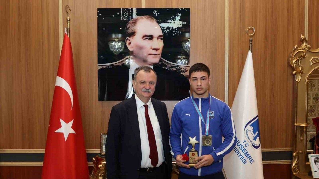 Yunusemre Belediye Başkanı Semih Balaban, Ankara’da düzenlenen Spor Toto Ümitler Türkiye Judo Şampiyonası’nda 73 kiloda şampiyon olan Yunusemre Belediyespor’un judocusu Emin Levent Yelkenci’yi tebrik ederek altınla ödüllendirdi.