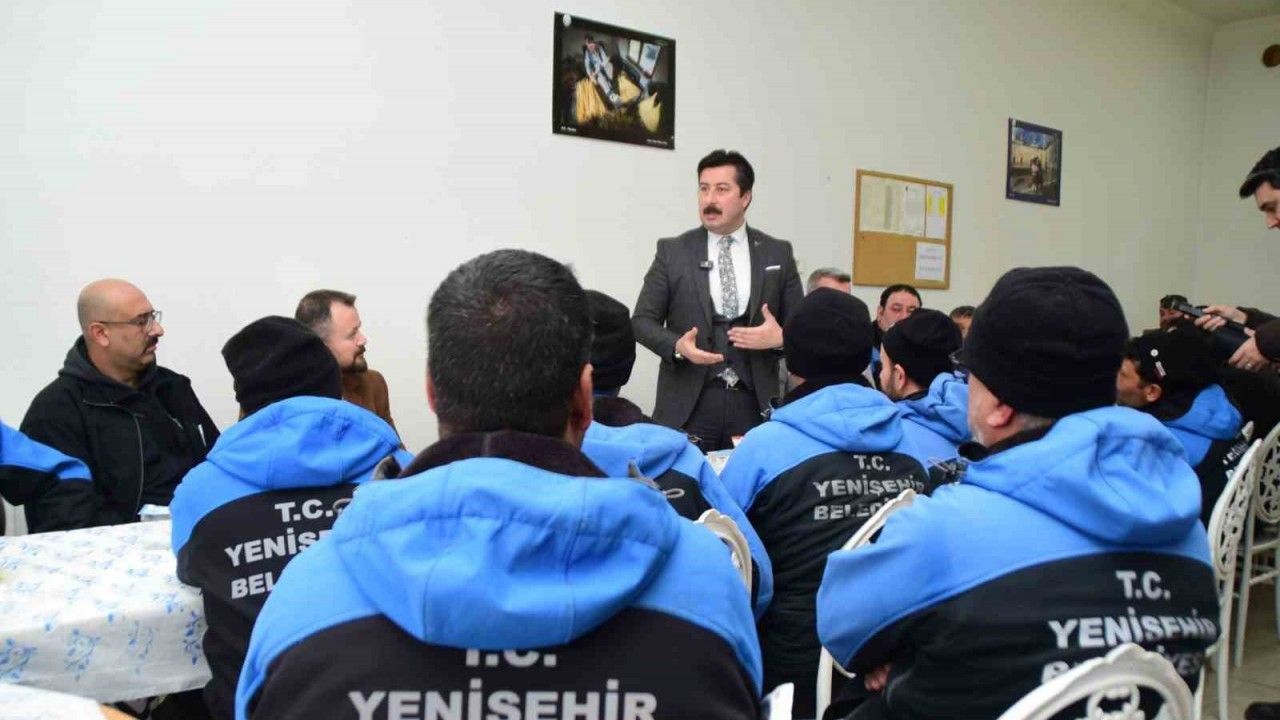 Yenişehir Belediye Başkanı Ercan Özel, Temizlik İşleri Müdürlüğü Ekiplerinin davetini kırmayarak sofralarına misafir oldu.