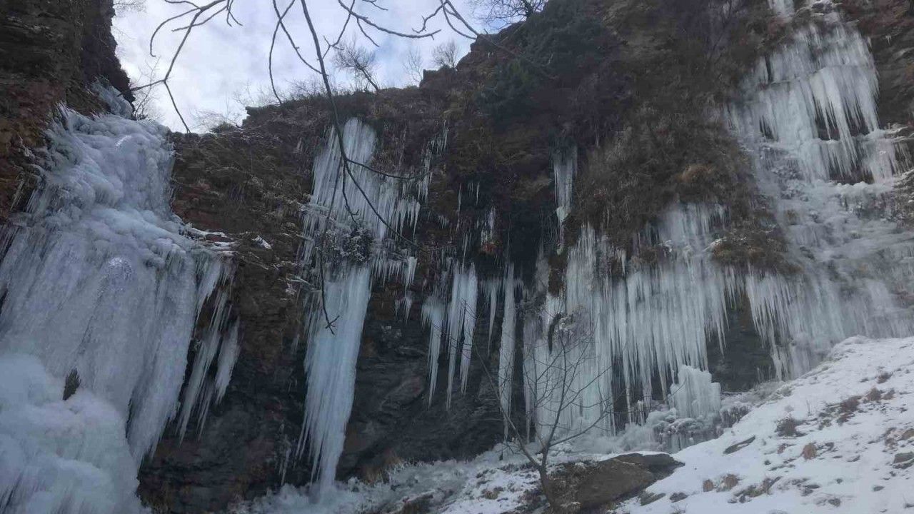 Batman’ın Sason ilçesinde dere yatakları ve şelaleler buz tuttu.