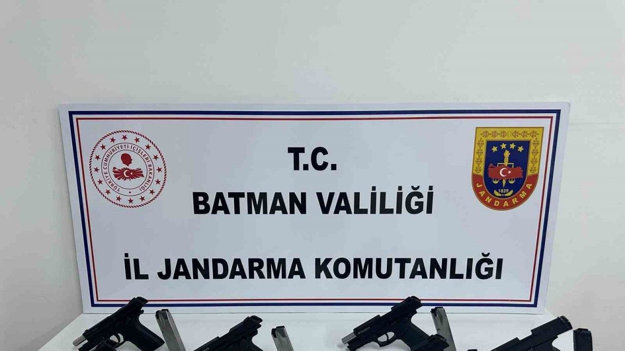 Batman İl Jandarma Komutanlığı, Kaçakçılık ve Organize Suçlarla Mücadele Şube Müdürlüğü ekipleri (KOM) tarafından 1 şüphelinin silah ve mühimmat kaçakçılığı yaptığı yönünde alınan bilgiye istinaden yapılan arama faaliyetinde 6 ruhsatsız tabanca, 6 tabanca şarjörü ve 1.9 mm çapında fişek ele geçirildi. Olayla ilgili gözaltına alınan şüpheli, jandarmadaki işlemlerinin ardından sevk edildiği adli makamlarca tutuklandı.