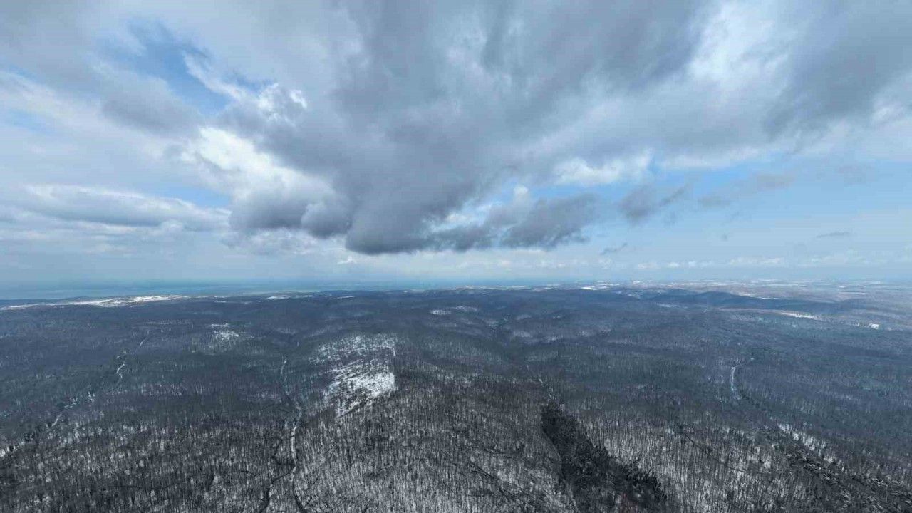 İstanbul’da dün etkisini gösteren ve sabah saatlerinden itibaren de aralıklarla devam eden kar yağışının ardından Belgrad Ormanı beyaza büründü. Ormandaki kar manzarası havadan görüntülendi.