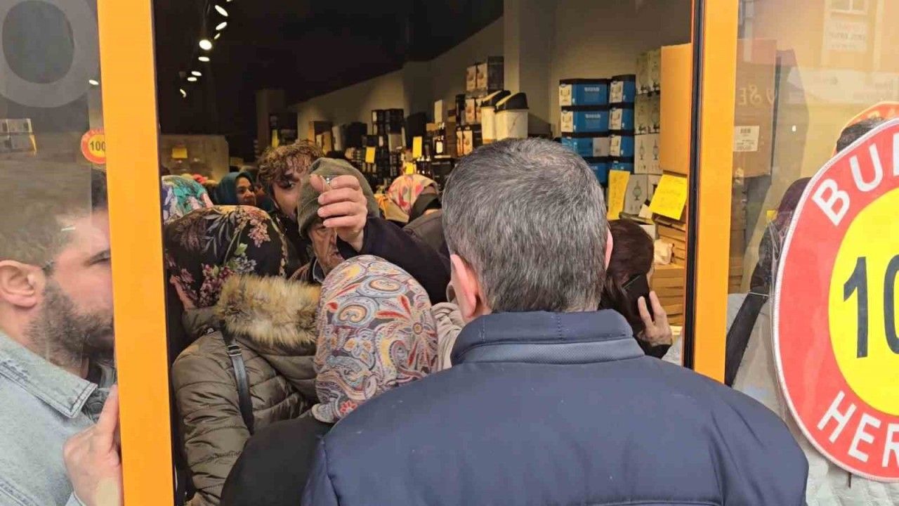 Zonguldak’ın Alaplı ilçesinde bir mağazanın açılışında vatandaşlar 100 liraya satılan ürünlerden alabilmek için adeta birbirleriyle yarıştı.