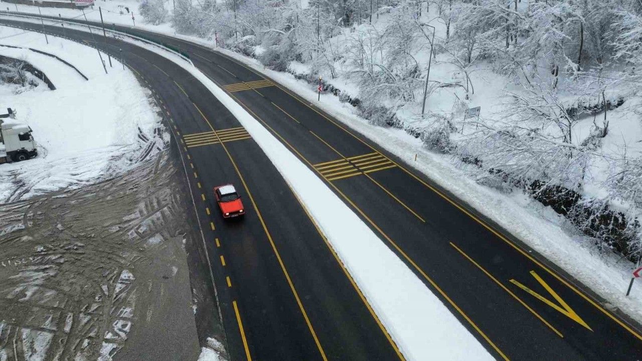 Düzce ve Bolu’da 3 gündür etkili olan kar yağışı sebebi ile Bolu Dağı’nda kar kalınlığı 40 santimetreye kadar çıktı. Karayolları ve Bölge Trafik ekiplerinin çalışması ile asfalt görünüme bürünen yolda kar ve sis etkili olmaya devam ediyor. Sis sebebi ile görüş mesafesi yer yer 30 metreye kadar düşerken, trafik akıcı bir şekilde devam ediyor.
