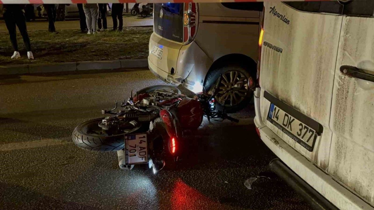 Bolu’da trafik ışıklarında hafif ticari araca çarpan motosiklet sürücüsü, yolda savrularak minibüsün altında kaldı. Meydana gelen kazada 23 yaşındaki motosiklet sürücüsü hayatını kaybetti.