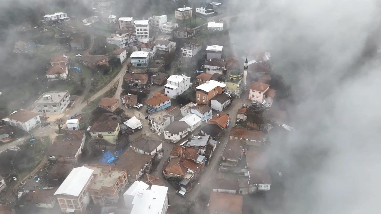 Bursa’nın Osmangazi ilçesindeki yüksek rakımlı Gökçeören Mahallesi bulutların arasında eşsiz bir manzara oluşturdu. Adeta Trabzon yaylalarını andıran görsel şölen dronla havadan görüntülendi.