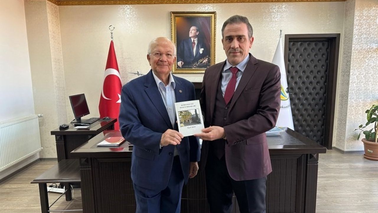 Burhaniyeli yazar Yücel Aras, Milli mücadele döneminde önemli hizmetlerde bulunmuş kahramanları ile Muhyiddini Rumi başta olmak üzere ilçenin önde gelen manevi şahsiyetlerinin ve menkıbelerinin anlatıldığı kitabı Kaymakamı İlyas Memiş’e takdim etti. Kaymakam İlyas Memiş, Yücel Aaras’ın yaptığı kıymetli çalışmasından dolayı tebrik ederken, kitabın İlçeye hayırlı olması temennisinde bulundu. Yücel Aras da, Kaymakama kitabın basımındaki katkılarından dolayı teşekkür etti.
