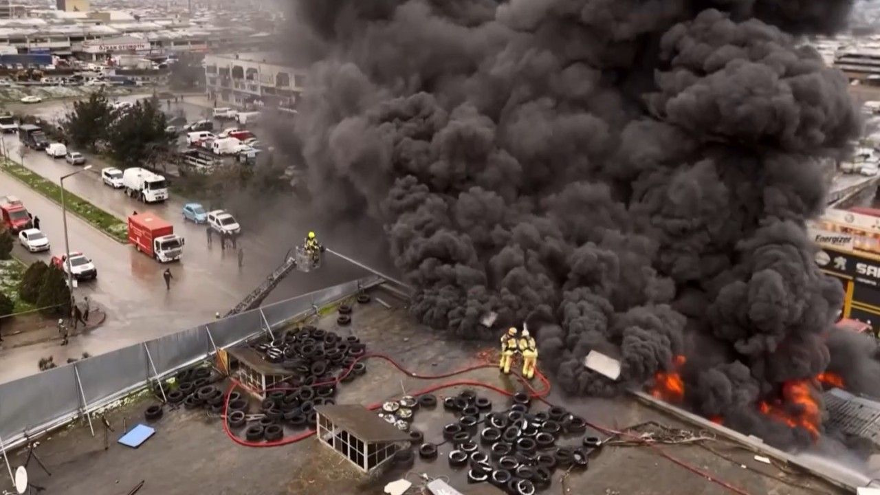 Bursa’daki sanayi sitesinde madeni yağ satışı yapılan iş yerinde başlayan yangın, çok sayıdaki itfaiye ekibinin müdahalesiyle kontrol altına alındı. Alevler ve sanayi sitesini kaplayan kara dumanlar havadan görüntülendi.