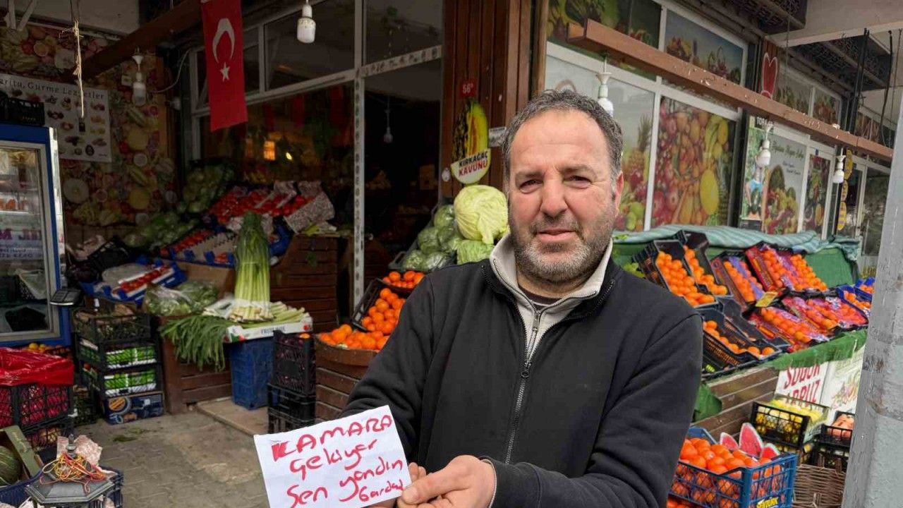 İstanbul Büyükçekmece’de bir manava dadadan hırsız, birkaç gün üst üste gelerek iş yeri önündeki portakal ve mandalinaları çaldı. Yaşananlar güvenlik kamerasına yansırken, iş yeri sahibi çözümü kağıda, "Kameraya çekiliyorsun, sen yandın gardaş" yazıp kapıya koymakta buldu.