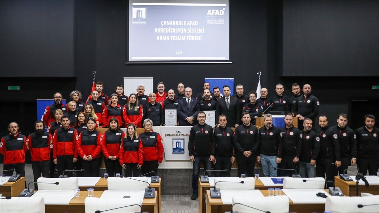 Çanakkale İl Özel İdaresi İl Genel Meclisi Salonunda, AFAD tarafından “Kentsel Arama Kurtarma Alanı Hafif Seviye Arama ve Kurtarma” akreditasyonu yapılan ekipler için tören düzenlendi.