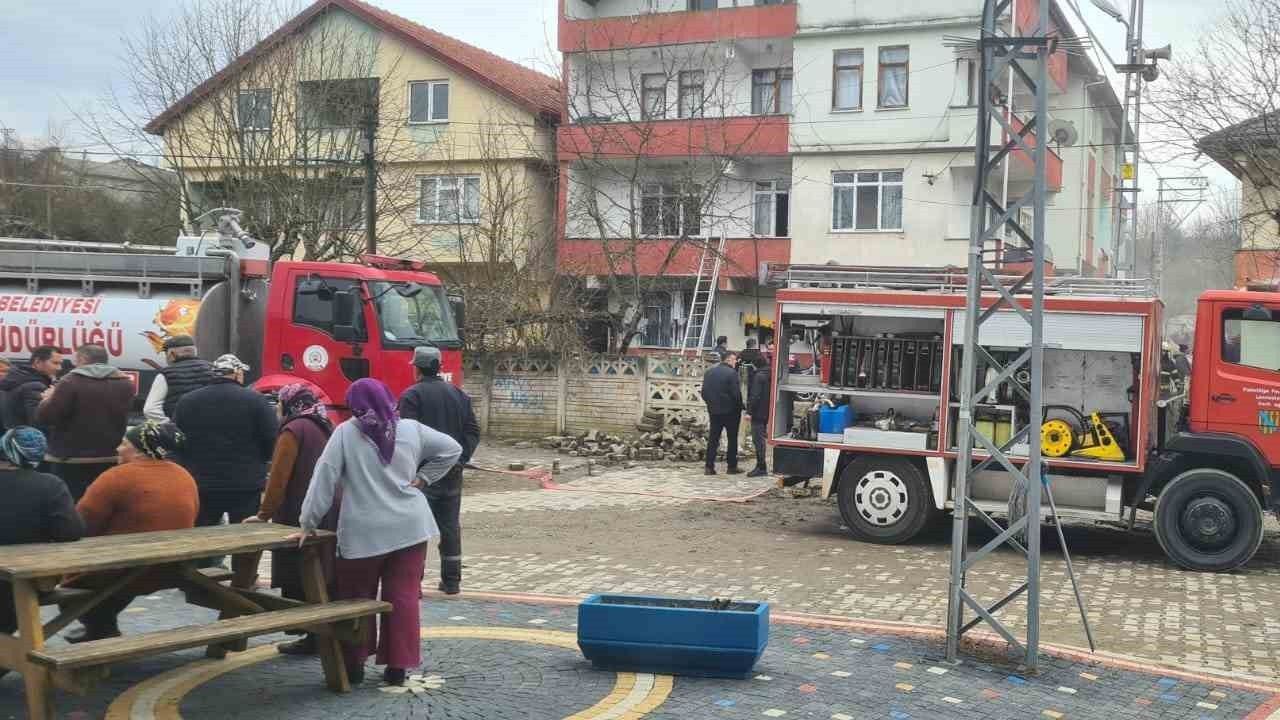 Zonguldak’ın Çaycuma ilçesinde 4 katlı bir evin ikinci katında yangın çıktı. İtfaiye ekiplerince müdahale edilen yangında soğutma çalışmaları devam ederken dumandan etkilenen 1 kişi tedavi altına alındı.
