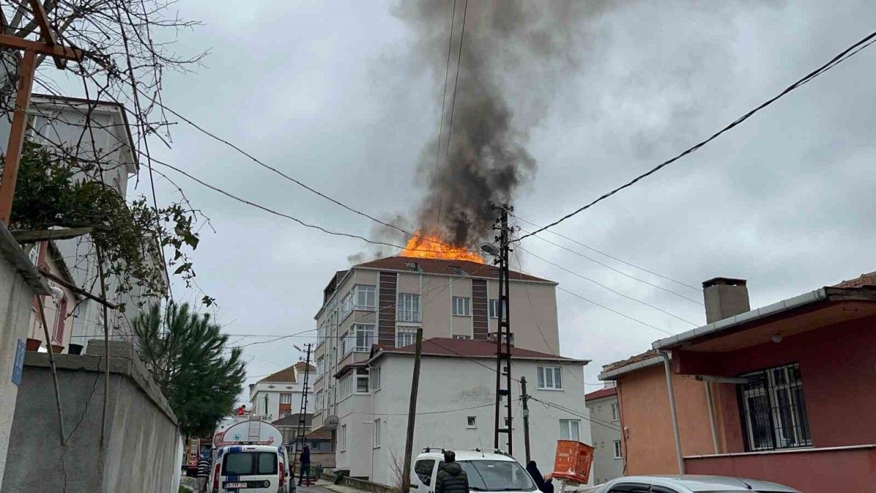 Çerkezköy İstasyon Mahallesi Çaylak Sokak’ta bulunan 3 katlı bir apartmanın çatı katında sabah saat 10.00 sıralarında yangın çıktı. Sobadan kaynaklandığı iddia edilen yangını fark eden apartman sakinleri durumu 112 Acil Çağrı Merkezi’ne bildirdi. İhbar üzerine olay yerine çok sayıda itfaiye, sağlık ve polis ekibi sevk edildi.