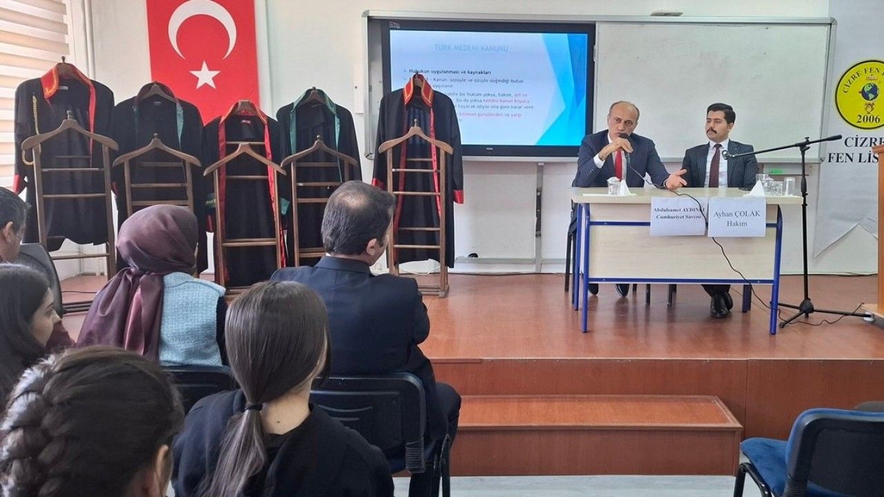 Kariyer günleri kapsamında Cumhuriyet Savcısı Abdulsamet Aydınlı ve Hakim Ayhan Çolak, Cizre Fen Lisesi öğrencileri ile Cumhuriyet Savcısı Eren Yetişir ise Cizre Merkez Anadolu Lisesi öğrencileri ile bir araya geldi.