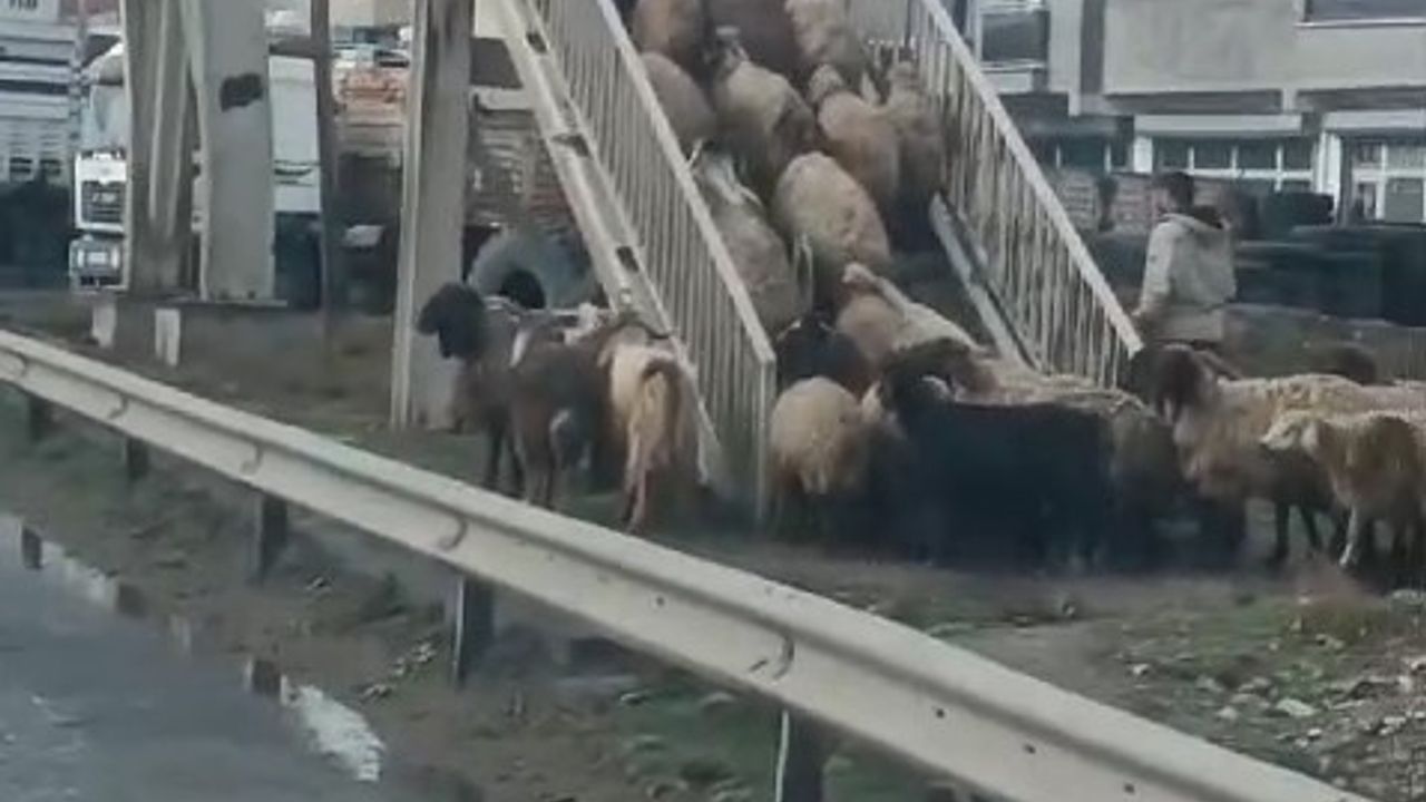 Bu sıra dışı olay, cep telefonu kamerasıyla görüntülendi. Yolun diğer tarafına geçmek isteyen koyunlar, hiç tereddüt etmeden yayalar için yapılan üst geçidi tercih etti. Koyun sürüsü, üst geçitten geçerek yolun karşısına geçti. O sırada oradan geçen bazı sürücüler ve yayalar bu alışılmadık durumu cep telefonlarıyla kaydederek sosyal medyada paylaştı. Görüntüler kısa sürede büyük ilgi gördü.