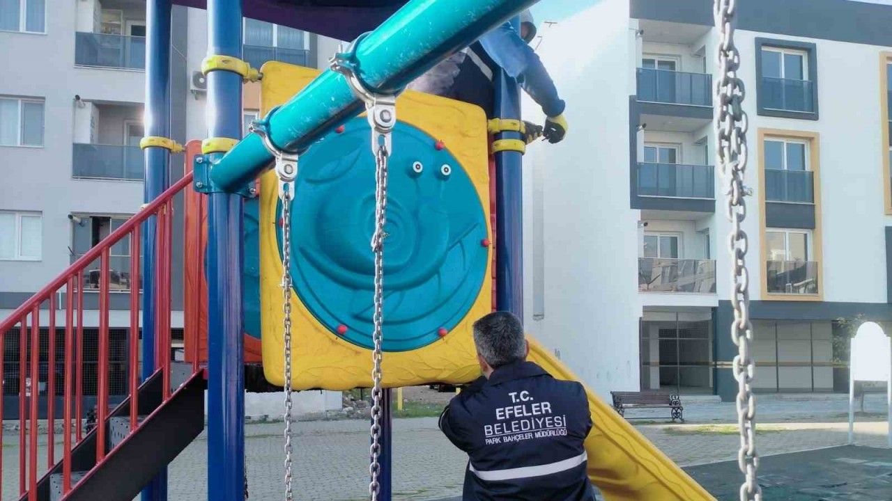 Öte yandan Efeler Belediyesi Park ve Bahçeler Müdürlüğü ekipleri parkta meydana gelen hasarın giderilmesi için mesainin ilk saatlerinde vakit kaybetmeden çalışmalara başladı. Zarar gören tüm oyun grupları ve zemin döşemeleri yenilenen park tekrar halkın kullanımına sunuldu.