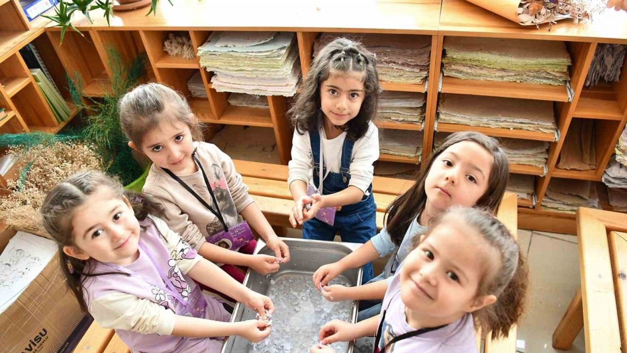 Öte yandan Geri Dönüşüm Atölyesi’nde uygulanan; çevre sorunlarının tüketim ve insan etkileriyle ilgisi ve çözüm önerilerini içeren bilinçlendirme programına katılan çocuklar, oyunlar ve görsel materyallerle doğayı korumanın yollarını eğlenceli bir şekilde öğreniyor. Atık kağıtların geri dönüşüm sürecini uygulamalı olarak öğrenerek birer çevre dostu olarak merkezden ayrılan öğrenciler, evlerinde de atık ayırmak konusunda özenli olup, çevrelerini de bu konuda teşvik edeceklerini belirtiyor.