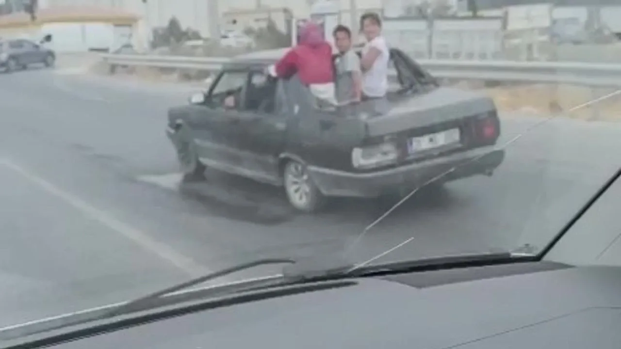 Trafikte seyir halinde ilerleyen arka camı olmayan TOFAŞ’tan dışarıya çıkan çocuklar, kendi canlarını ve trafiği tehlikeye attılar. Korku dolu anların sosyal medyada paylaşılması üzerine polis ekipleri konuyla ilgili çalışma başlattı. Yapılan çalışmalarda; araç sürücüsünün yabancı uyruklu S.M. olduğu tespit edildi. Sürücüye 2918 sayılı Karayolları Trafik Kanunu’nun ilgili maddeleri gereği toplam 7 bin 97 lira idari para cezası kesildi. Ayrıca sürücü hakkında TCK 179/2 maddesinden "trafik güvenliğini tehlikeye sokmak" suçundan işlem yapıldı.