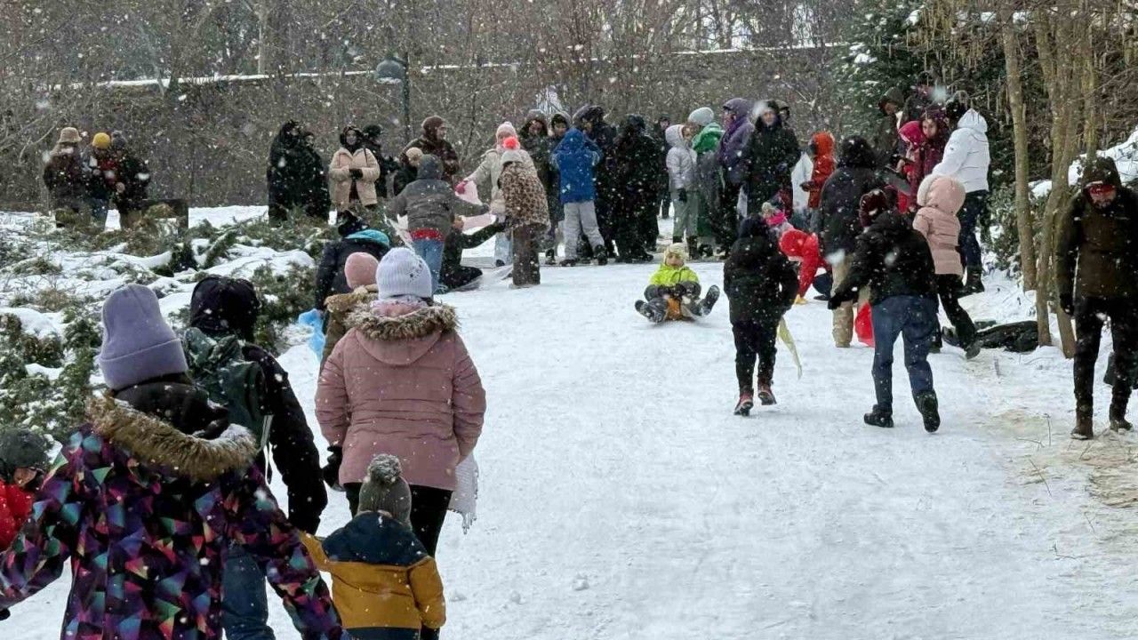 Sarıyer’de aralıklarla etkisini sürdüren kar yağışının ardından hafta sonunu fırsat bilen çocuklu aileler Atatürk Kent Ormanı’na akın etti. Çocuklar, karın tadını çıkarıp doyasıya eğlendi.